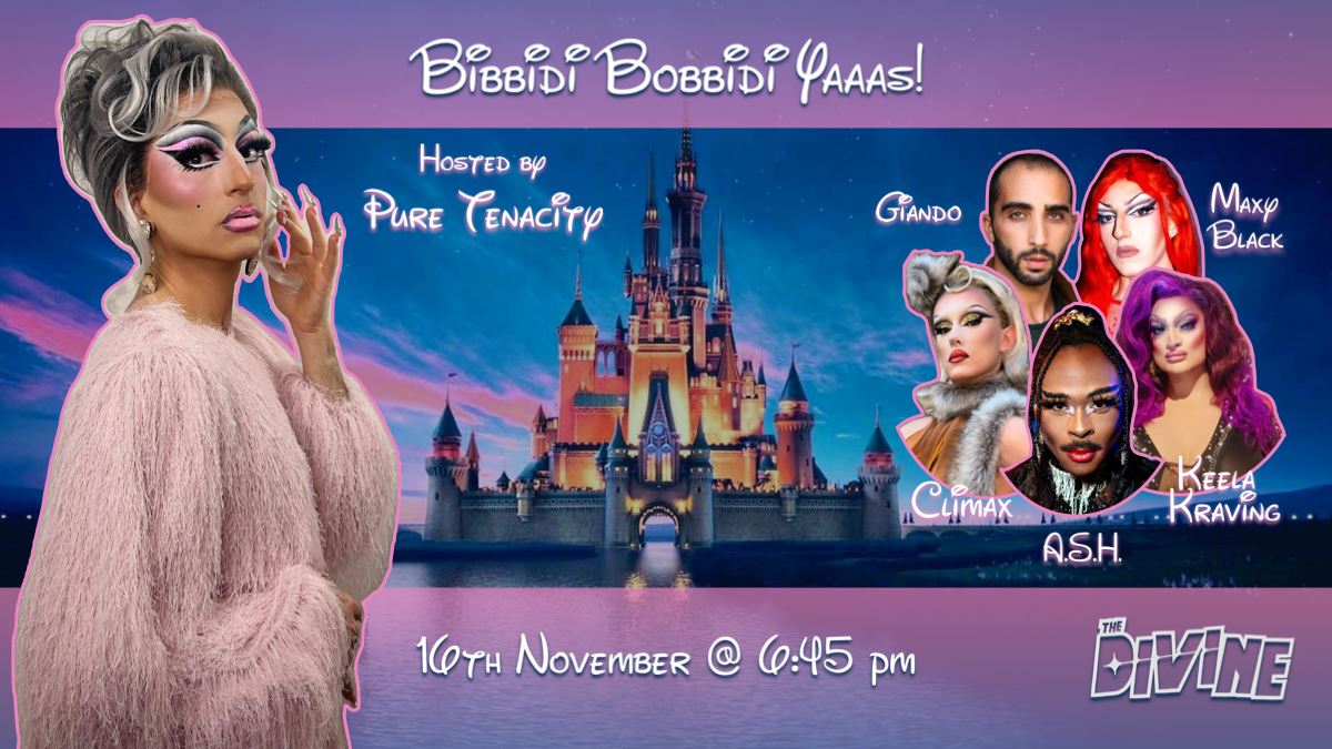 ✨ BIBBIDI BOBBIDI YAAAS. ✨What happens when the Disney princesses trade castles for council flats, fairy godmothers for the group chat, and glass slippers for dirty Air Forces? Welcome to Bibbidi Bobbidi YAAAS. , where magic meets mayhem, and happily ever after comes with a TFL delay.Join Pure Tenacity and her sisters as they bring your favorite fairytale icons straight to the streets of London, serving looks, live singing, laughs, and legendary lip syncs. Expect sass, scandal, and a whole lot of slay as the princess gang navigates modern life.One night only. Don’t be a wicked stepmother—grab your tickets now before they vanish at the stroke of midnight. For more updated info about the event check my instagram url :https://www.instagram.com/puretenacity___/ Starring:Pure tenacity Keela Kraving GiandoMaxy Black A.s.hMakeupClimax VENUE: The DivineDATE: November 16thDOORS OPEN: 6:45PMSHOW STARTS: 7:15PM Since our magical show will run more like a theatrical performance—with everything carefully timed—we kindly recommend arriving between 6:45 and 7:00 PM. That way, we’ll have plenty of time to welcome you, check everyone in, and begin the adventure right on time. 🌟We can’t wait to see you there. *A limited number of early birds tickets are available **a number of discounted tickets for those with accessibility issues and their compassions have been set aside.ACCESS:Sadly, The Divine is currently not fully accessible.The cabaret and club space are in the basement of the venue. There are 17 wide steps with slipresistant treads down to the space with sturdy handrails either side. There are two steps up to the stage.The toilets are in the basement and are not accessible for wheelchair users.If you need further information, please refer to The Divine ‘About’ page on the website. www.thedivine.co.ukDATE: November 16th